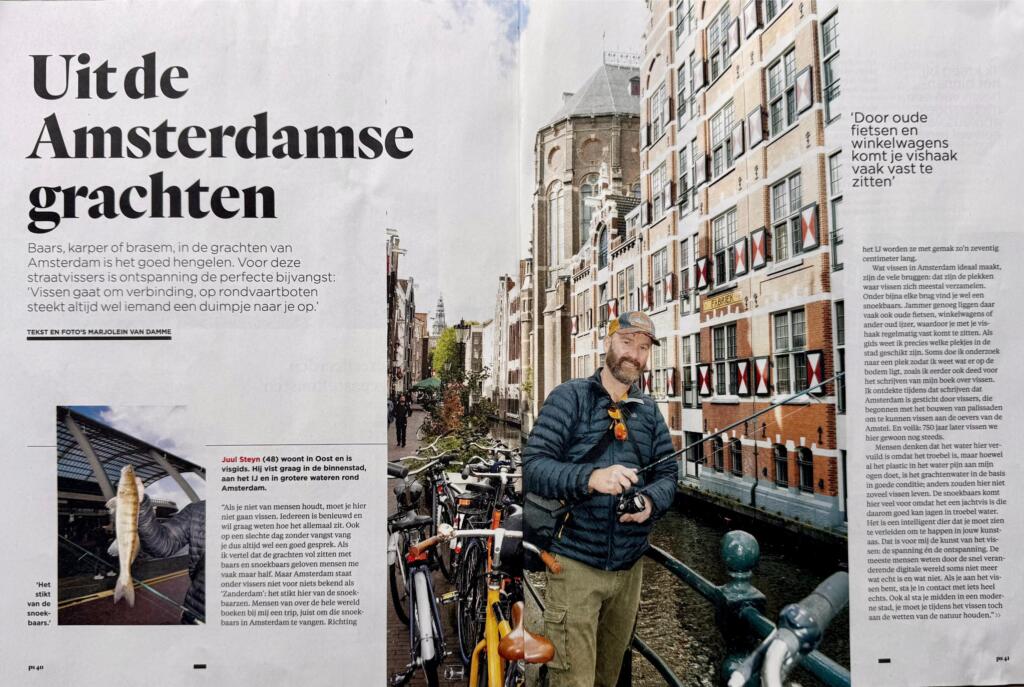 I’m proud to share that I’ve been featured with the cover story of this week’s PS, the weekend magazine of the Amsterdam newspaper Het Parool. The article dives into the world of street fishing in Amsterdam — a style of fishing I really enjoy with my friends and my son. Check out the article and cover below.